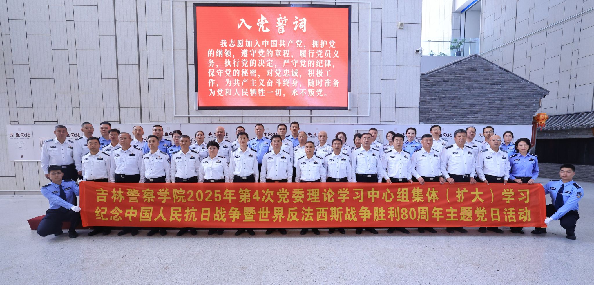 为贯彻落实习近平总书记关于东北全面振兴和吉林工作系列重要指示精神,传承弘扬伟大抗战精神、东北抗联精神,坚定理想信念,在庆祝中华人民共和国成立76周年之际,学院组织党员赴东北抗日联军纪念馆参观,开展“2025年第4次党委理论学习中心组集体(扩大)学习 纪念中国人民抗日战争暨世界反法西斯战争胜利80周年主题党日”活动。党委书记胡金刚参加活动,学院党委常委、各部门主要负责同志参加活动。