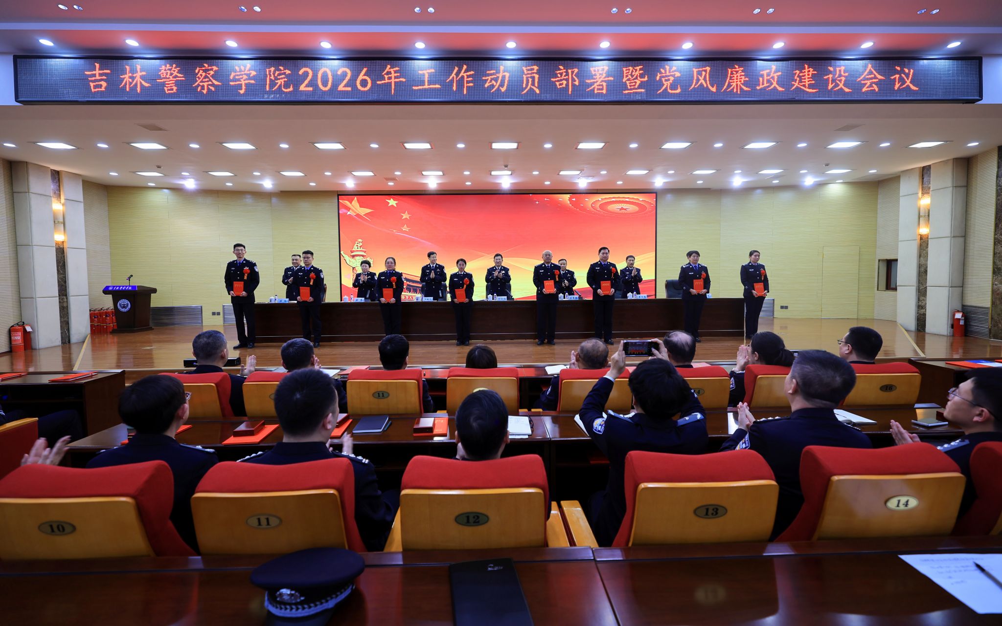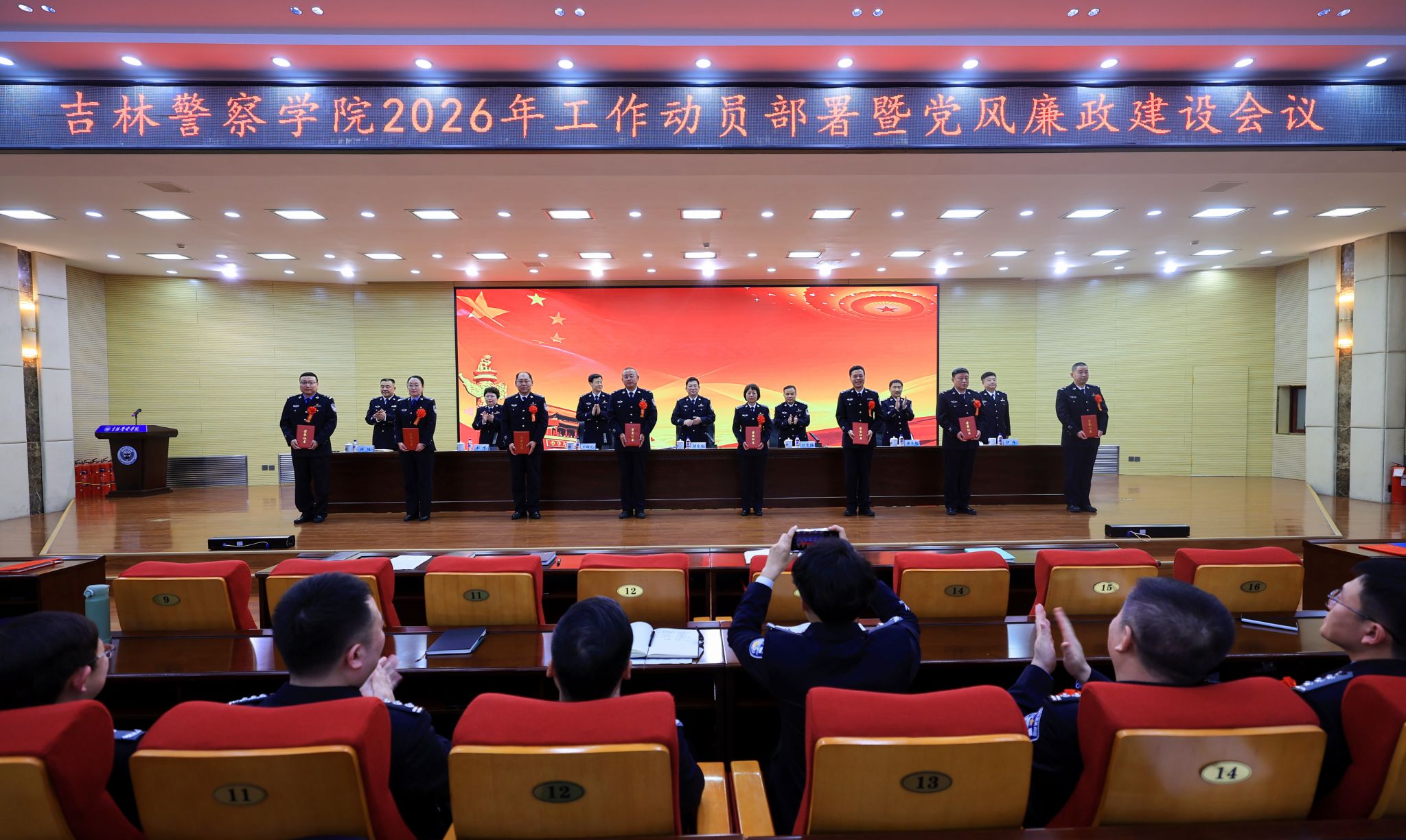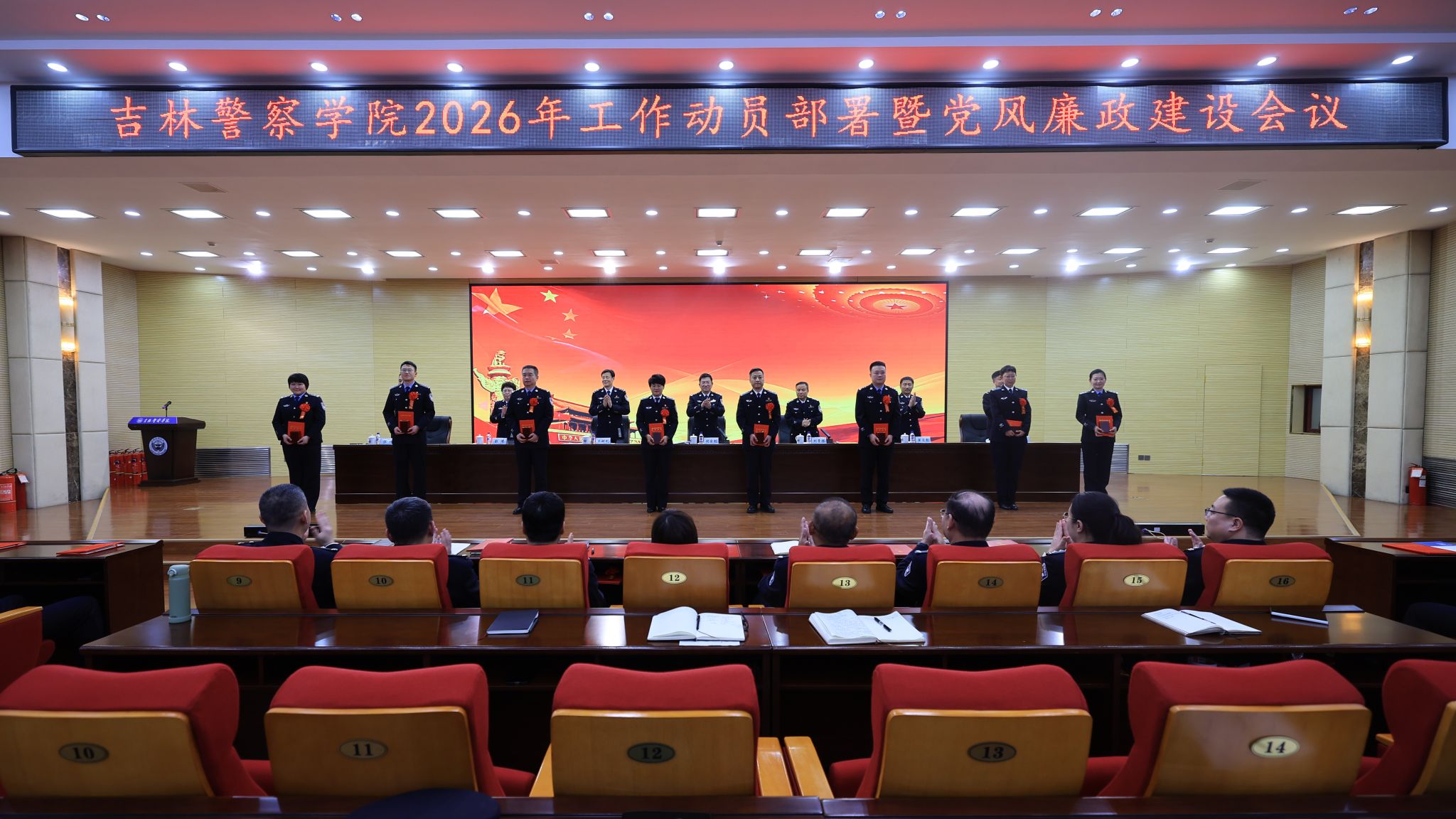 岁序更替,华章日新。为确保学院“十五五”规划开局之年起好步、开好局,进一步统一思想、凝聚共识、激发干劲,3月1日,学院隆重召开2026年工作动员部署暨党风廉政建设会议。党委书记胡金刚出席会议并讲话,党委副书记、院长刘景辉作《吉林警察学院2025年度工作报告》,副院长王树刚主持会议。